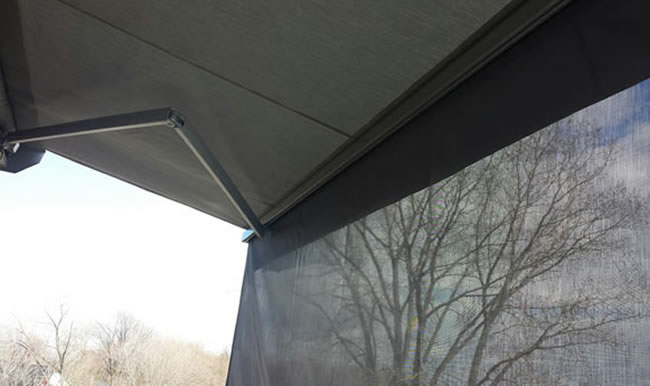L'avantage que vous offre l'auvent rétractable avec store c'est d'être protégé du soleil par le devant et par le dessus. Cela ajoute également à votre intimité, ce qui n'est pas négligeable !